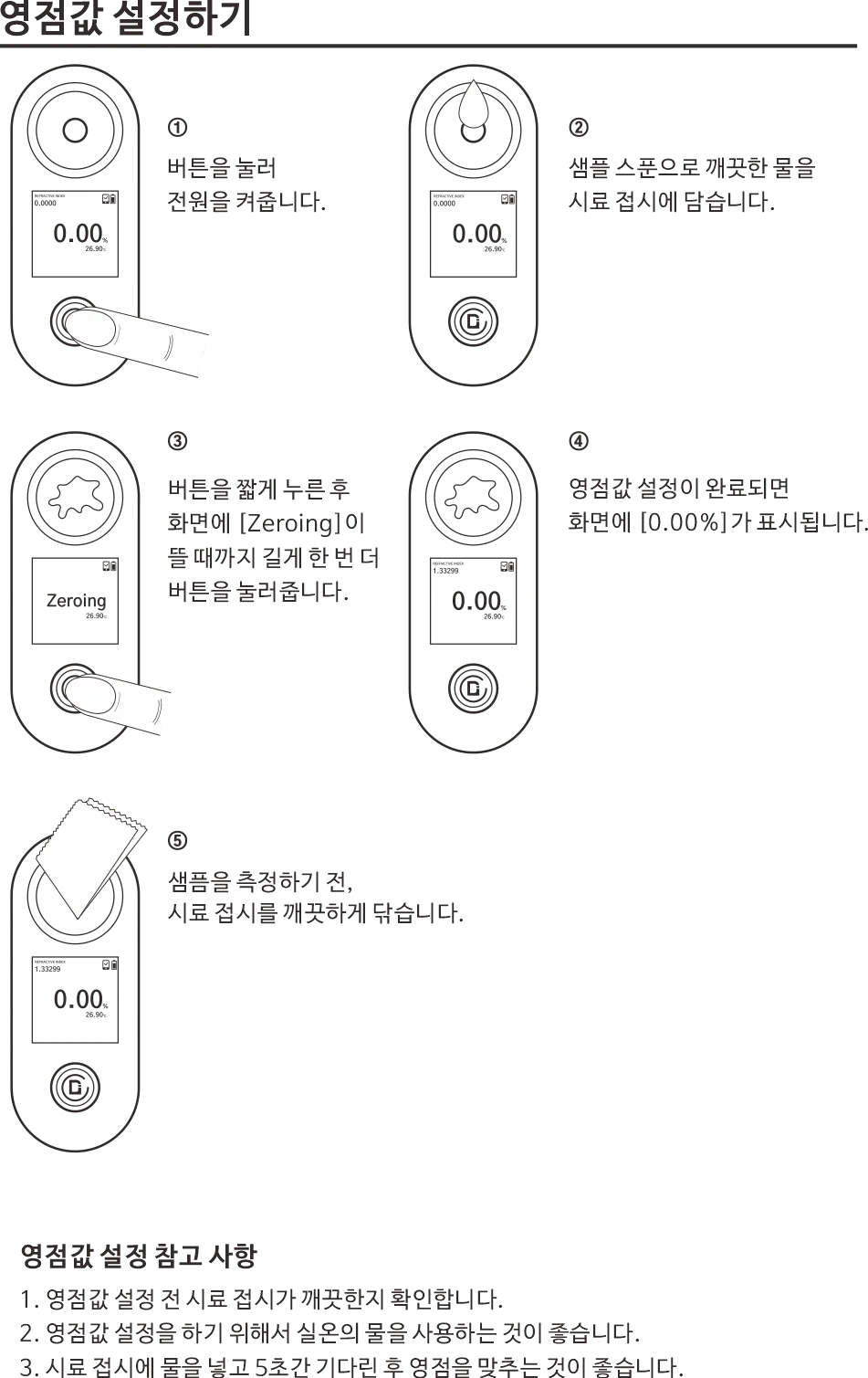 실제 측정 전에 커피 TDS 굴절계를 물로 보정해야 합니다. 아래 안내를 참조하세요.