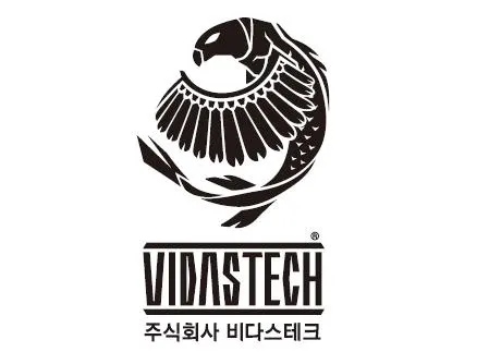 (주) 비다스테크의 초창기 로고, 날치가 바다를 헤엄치고 하늘을 나는 모습에서 영감을 받아, 세상을 자유롭게 누린다는 의미를 기계적인 느낌과 함께 디자인에 담았습니다.