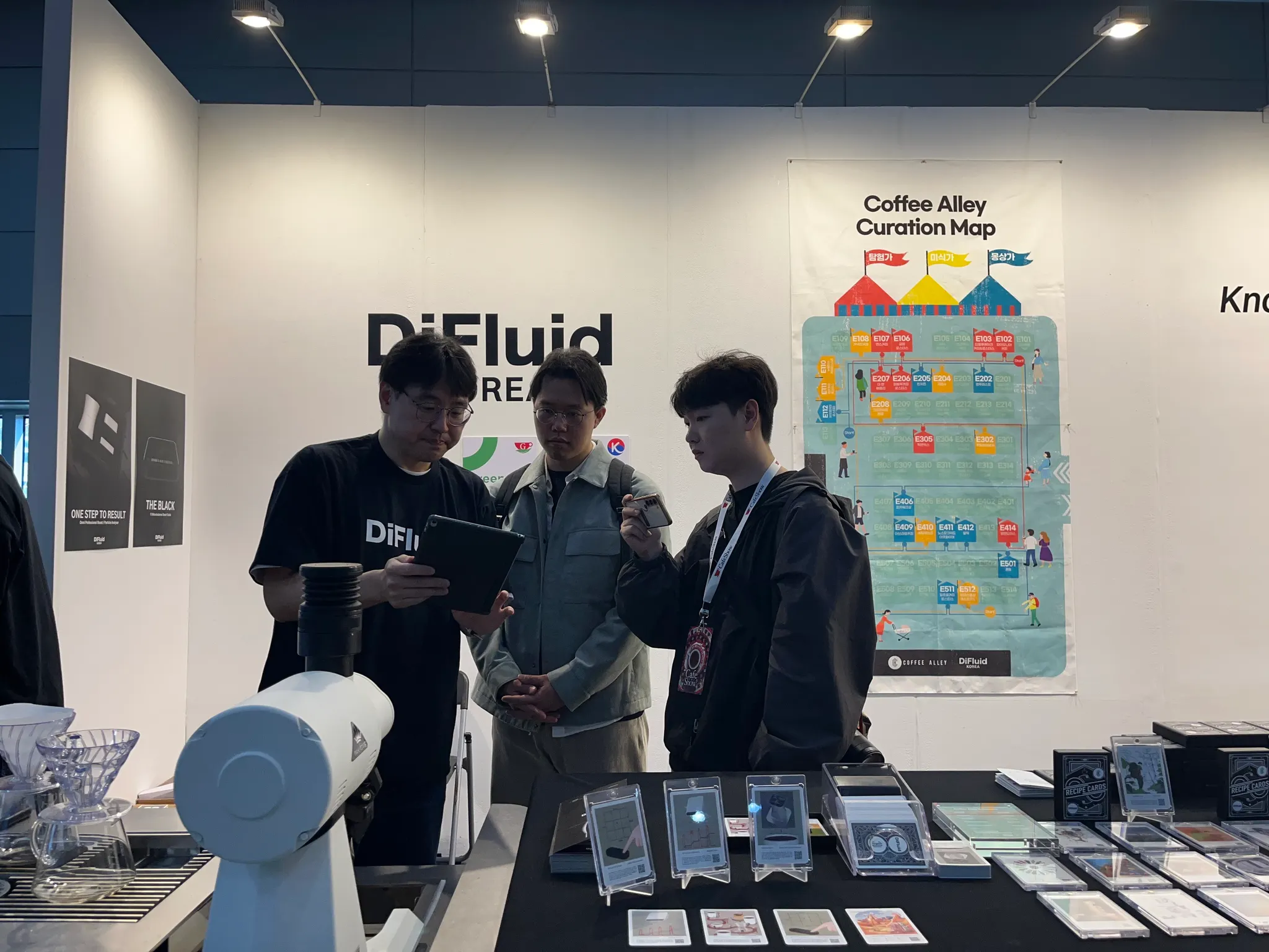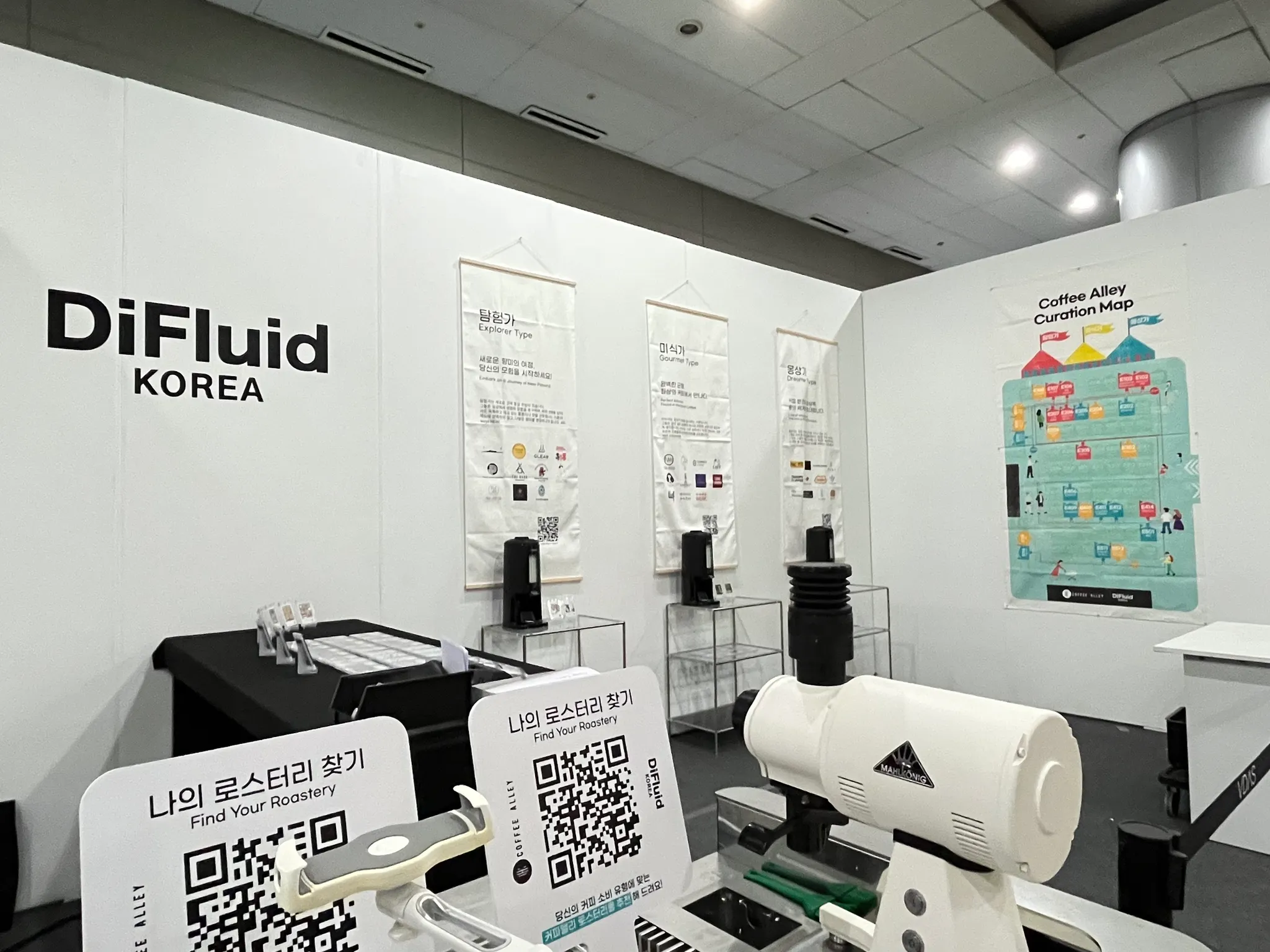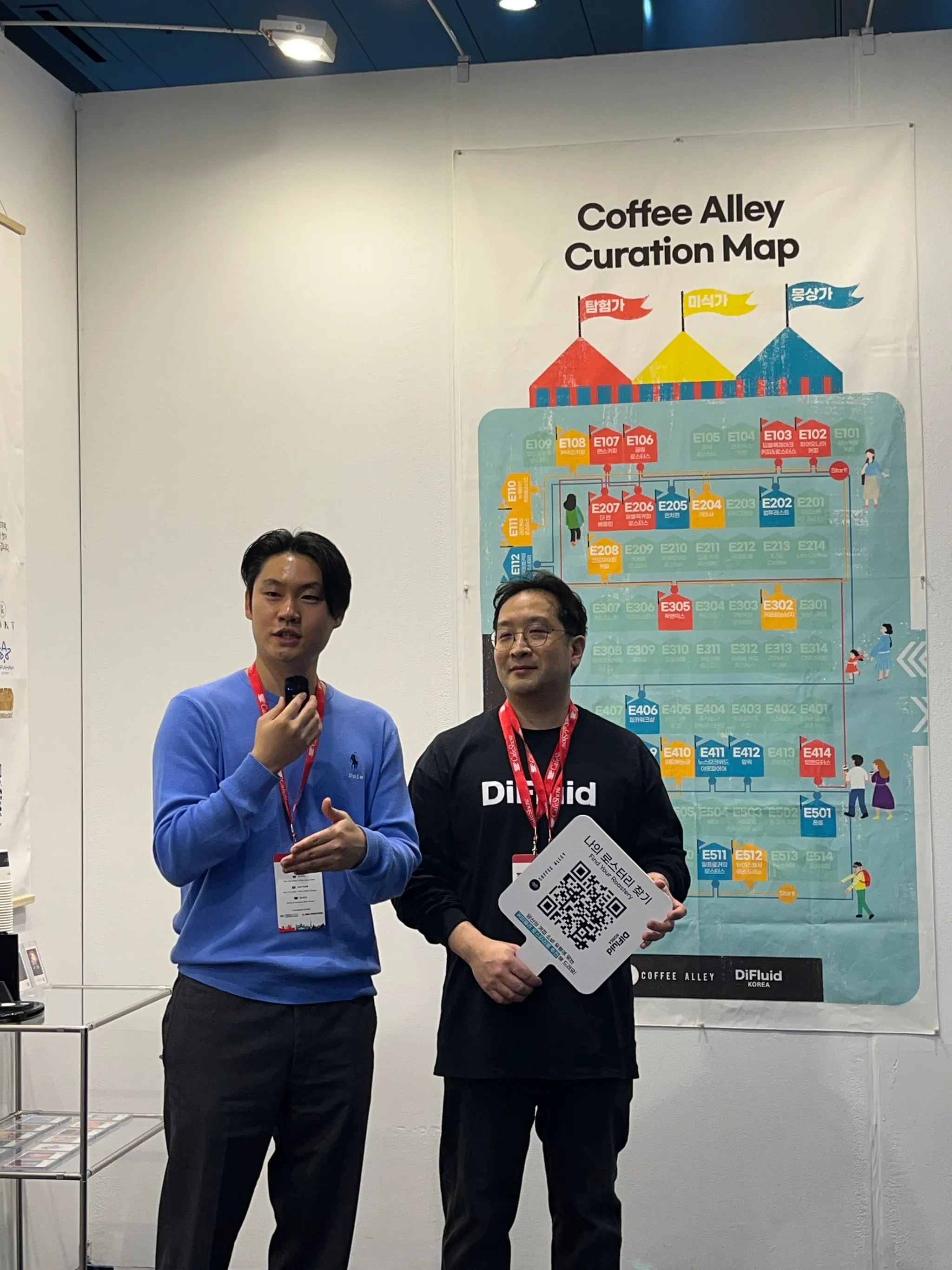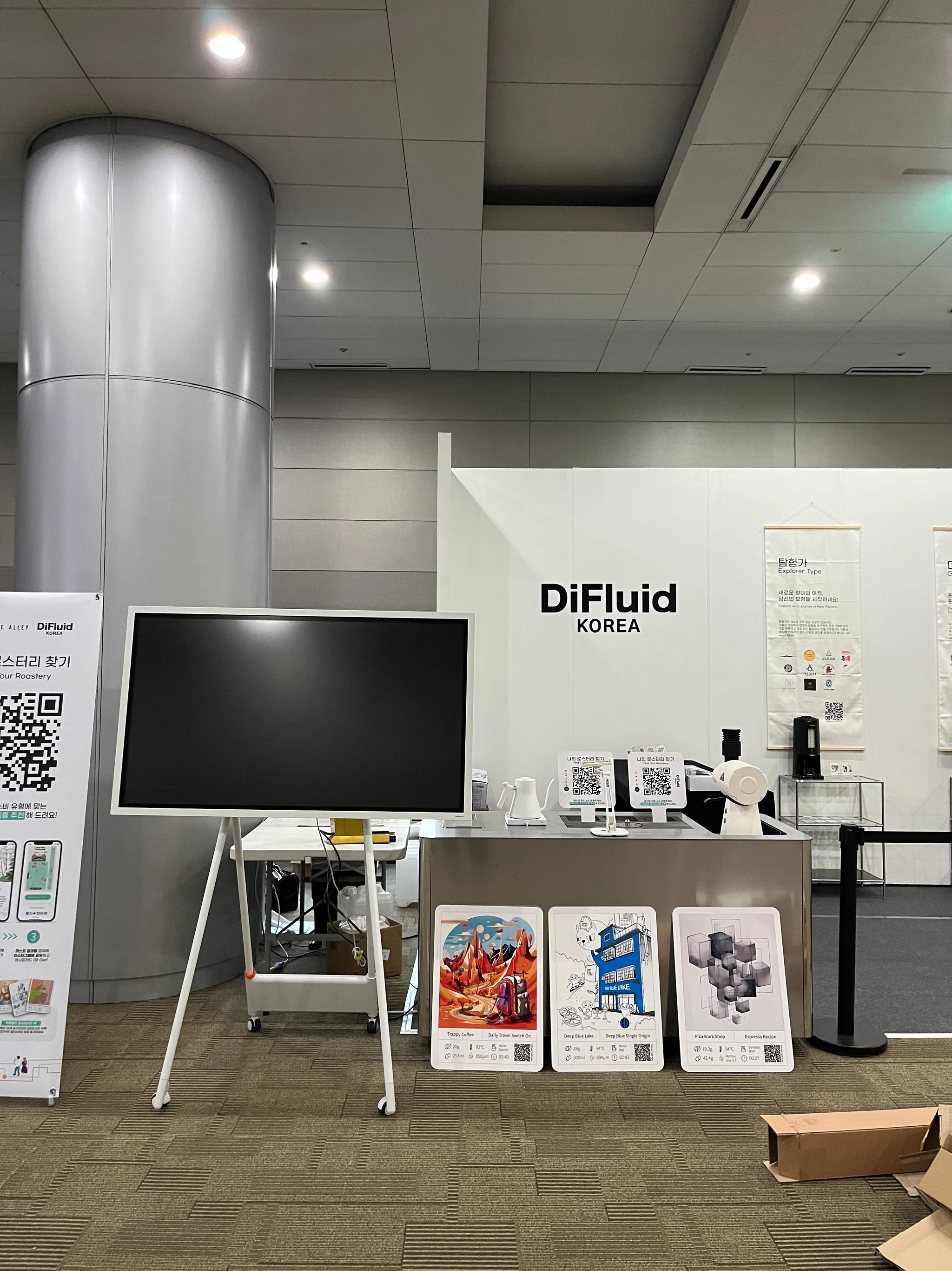 커피 앨리 부스와 디플루이드 코리아 부스 현장 사진을 모았습니다.