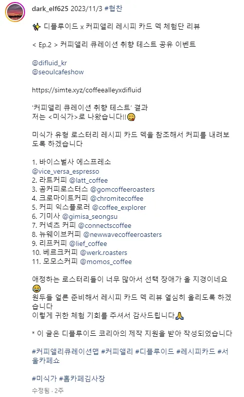 #커피앨리레시피카드 #커피앨리큐레이션맵