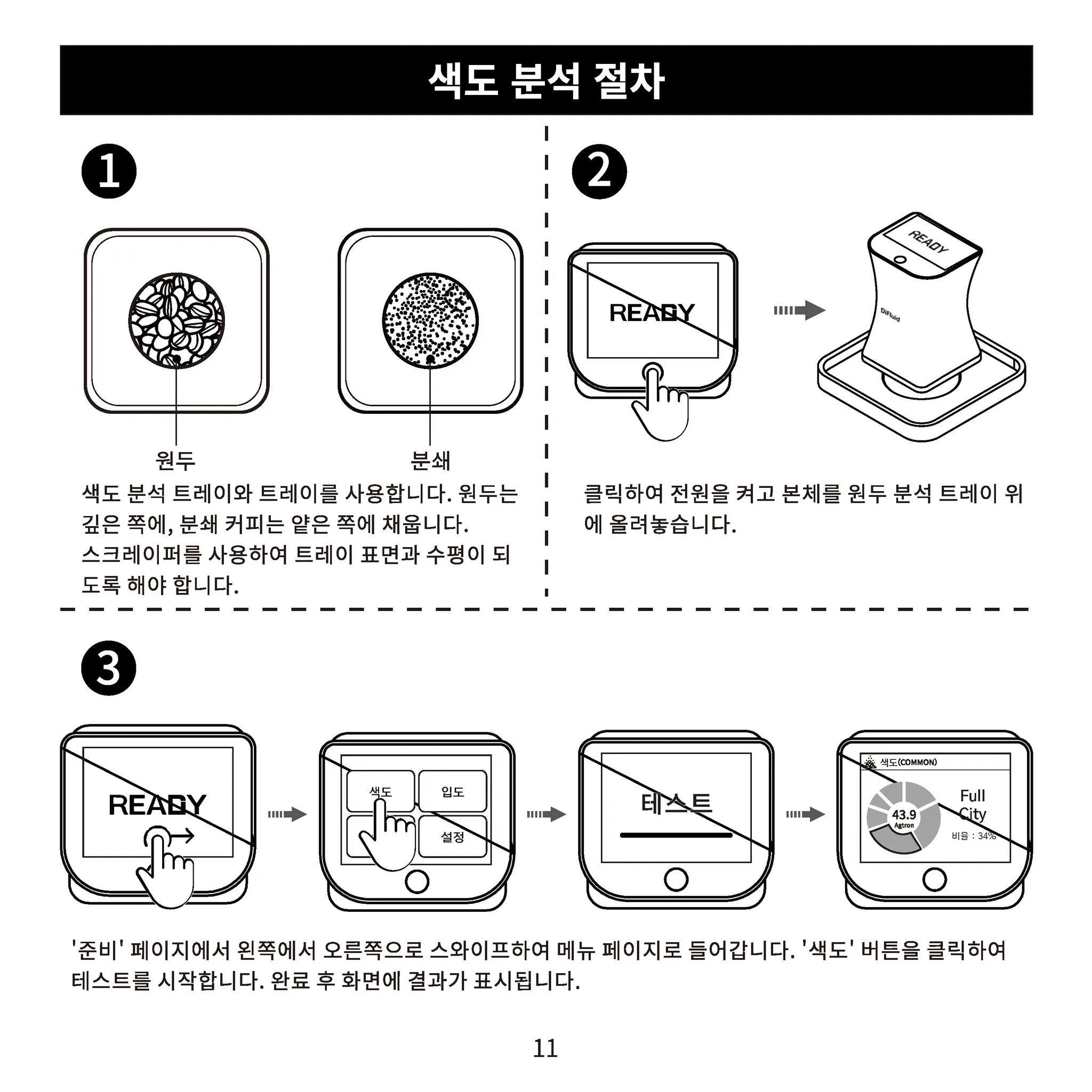 본 문서는 DiFluid Omni를 사용해 커피 원두의 색도(Roast Level)를 측정하는 방법을 안내합니다. 색도 측정은 환경 조건과 측정 방식에 따라 수치가 달라질 수 있으므로, 일관된 기준과 절차가 중요합니다. Omni는 근적외선 분석 방식과 이미지 퓨전 기술을 결합하여 실버스킨으로 인한 색도 측정 오차를 줄이는 기능을 갖추고 있습니다. 기본 표기 값은 Agtron(아그트론) 기준이며, SCA 또는 Common 표준 명칭으로 자동 변환하여 제공합니다.