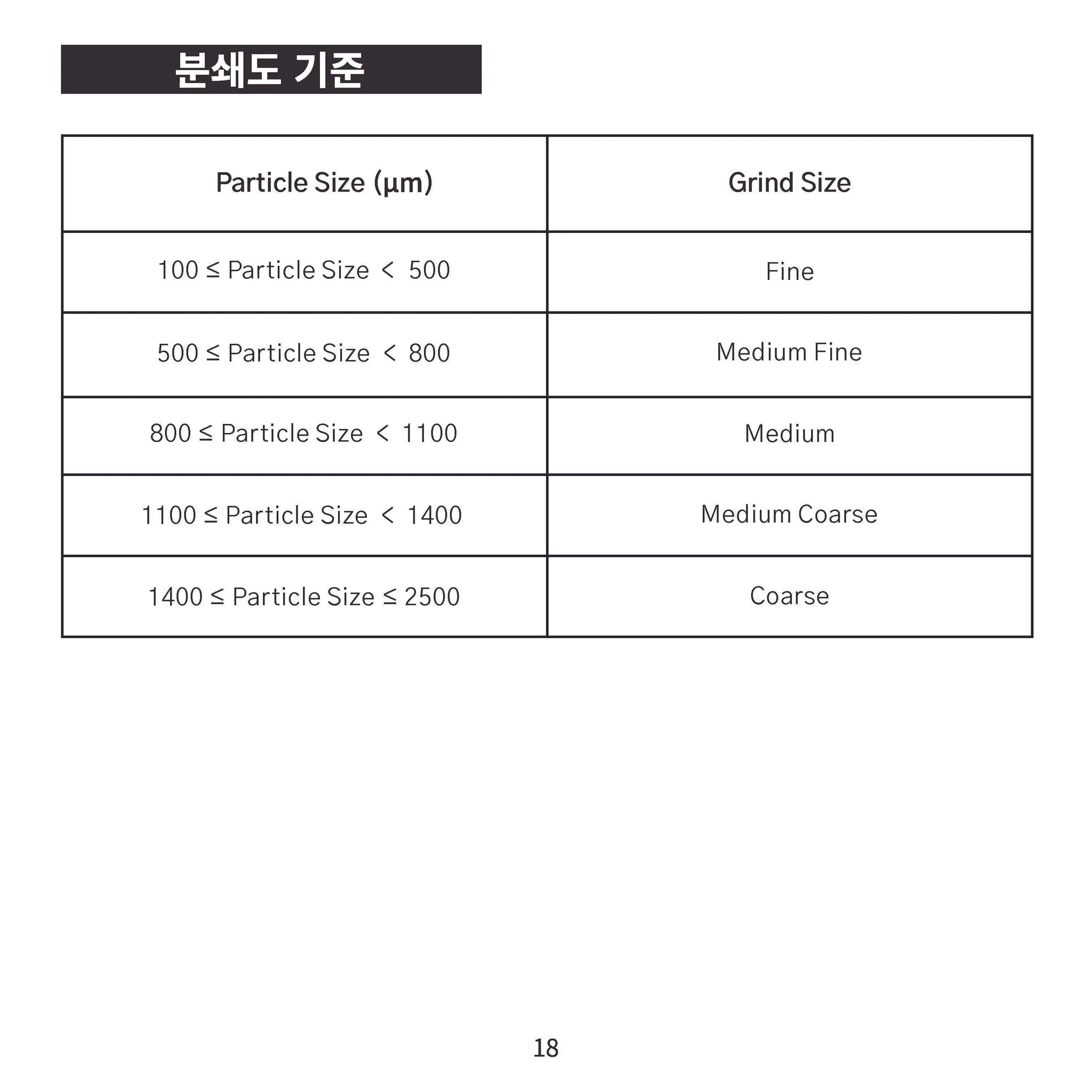 분쇄 입자 크기는 500μm - 700μm 사이로 설정하여 모든 샘플을 동일 조건으로 준비합니다.