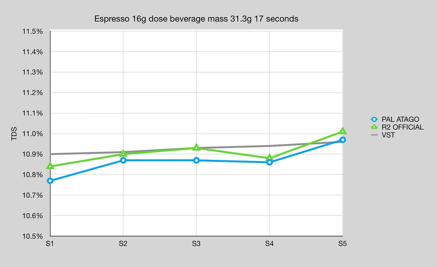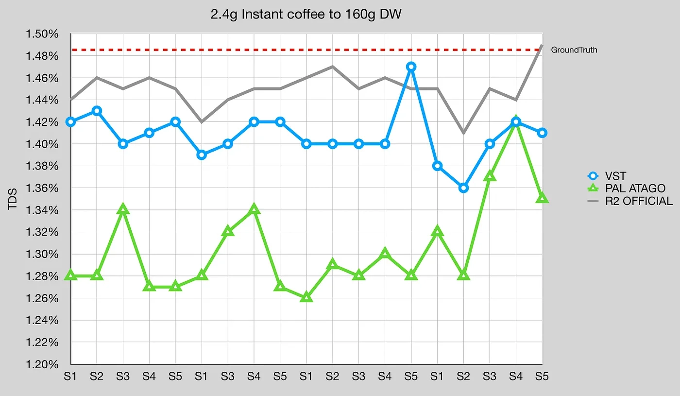 그림 6: 필터 커피의 R2/Atago와 VST 비교