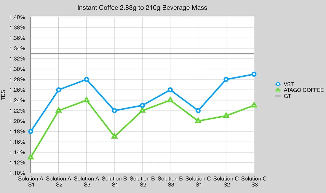 그림 5: 필터 농도에서 인스턴트 커피를 위한 VST, Atago, R2