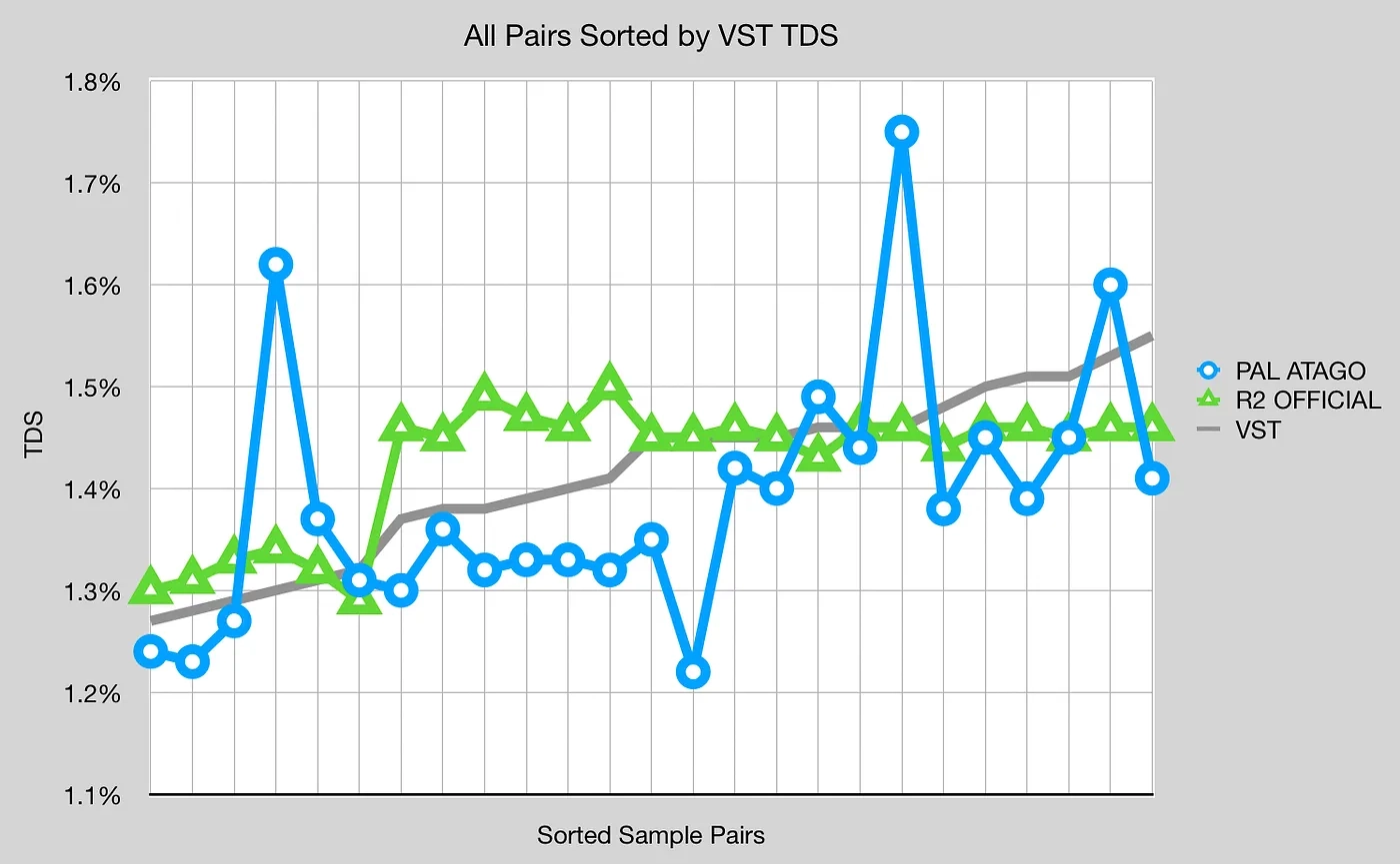 그림 7: 필터 커피의 R2/Atago와 VST 비교, 정렬된 쌍