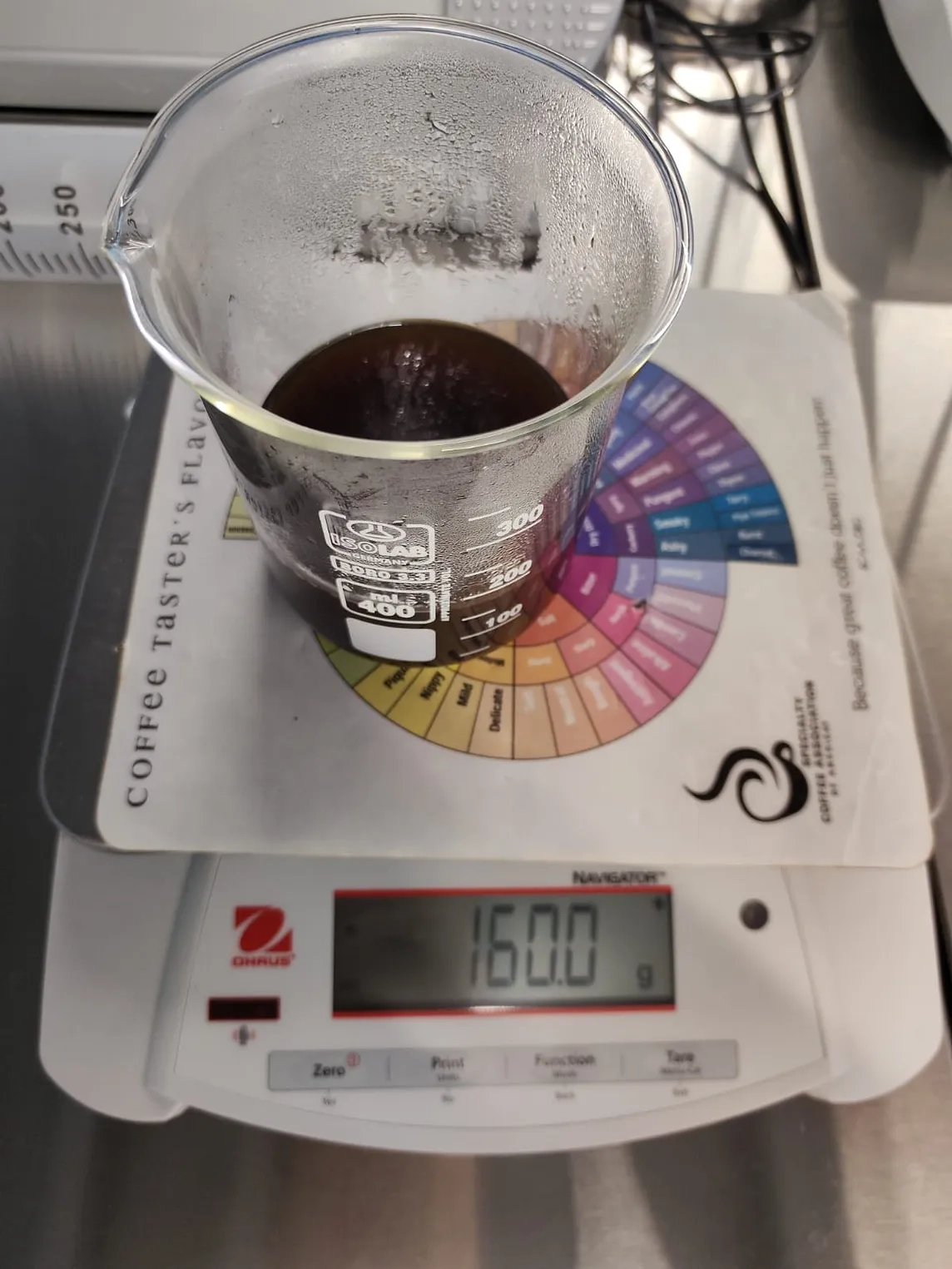 이 테스트는 농도가 약간씩 다른 4가지 커피를 추출하고 각 추출에서 몇 가지 테스트 샘플을 채취하여 수행했습니다. 네 번의 추출은 모두 동일한 농도(15g 투입, 220g 추출)에서 시작했으며, 마지막 두 번의 추출은 추출 후 각각 12g과 32g의 물을 추가했습니다.