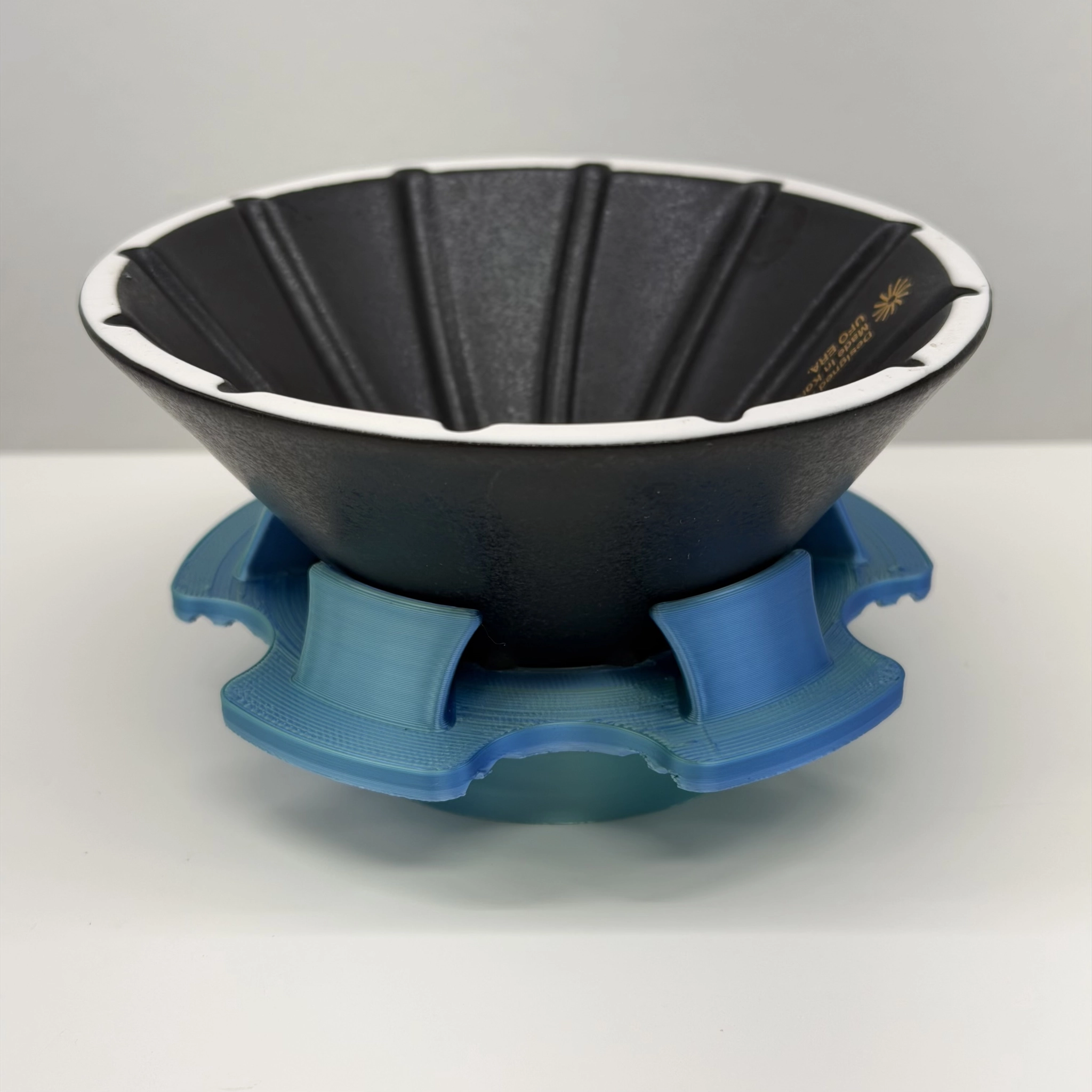UFO 드리퍼는 그 형태적 특성상 일반적인 서버나 추출 도구 위에 올렸을 때, 종류에 따라 거치가 불안정하거나 딱 맞물리지 않는 경우가 있었습니다. 또한 추출이 끝난 후, 뜨거운 드리퍼를 바닥에 내려놓을 때 하부 리브(Rib)나 추출구가 바닥에 직접 닿는 위생적인 문제도 신경이 쓰였습니다.