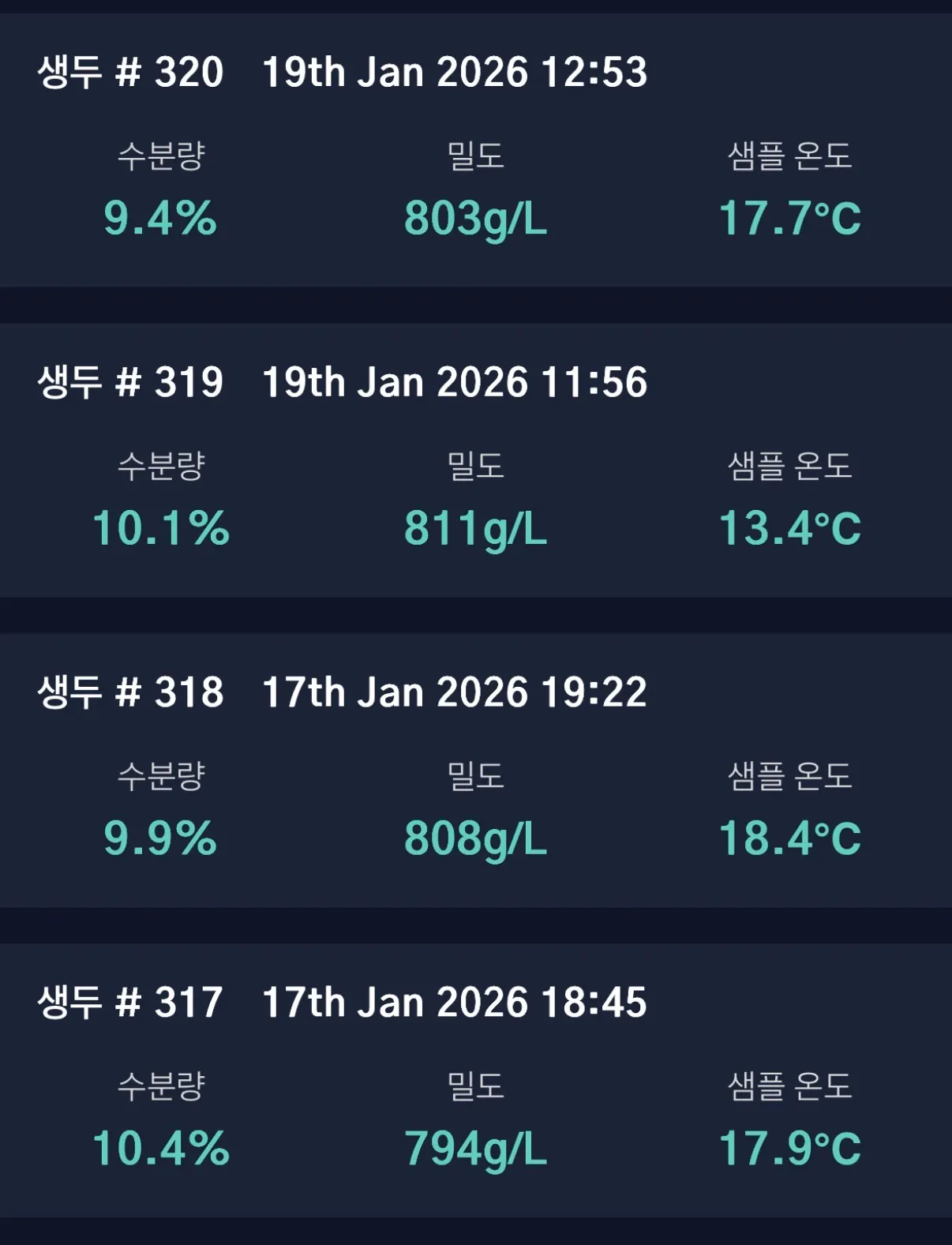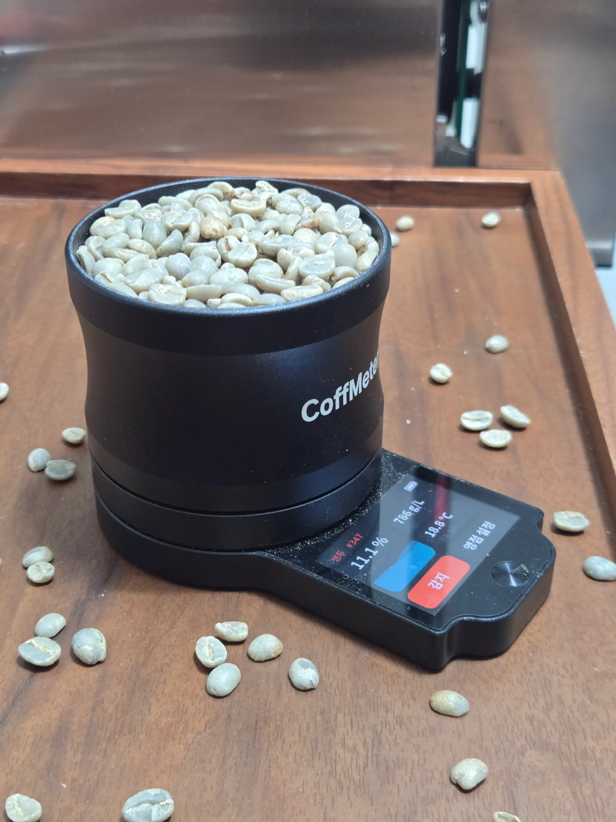 디플루이드 커프미터 M1 은 생두의 온도에 따라 수분값이 미세하게 변하기도 하는데 자체온도센서로 이를 즉시 보정해 그런 정밀도를 유지할 수 있습니다. 저도 매일 로스팅 시작 전 캘리브레이션을 하고 측정을 시작합니다. 데이터의 신뢰도는 철저한 기기 관리에서부터 이루어집니다.