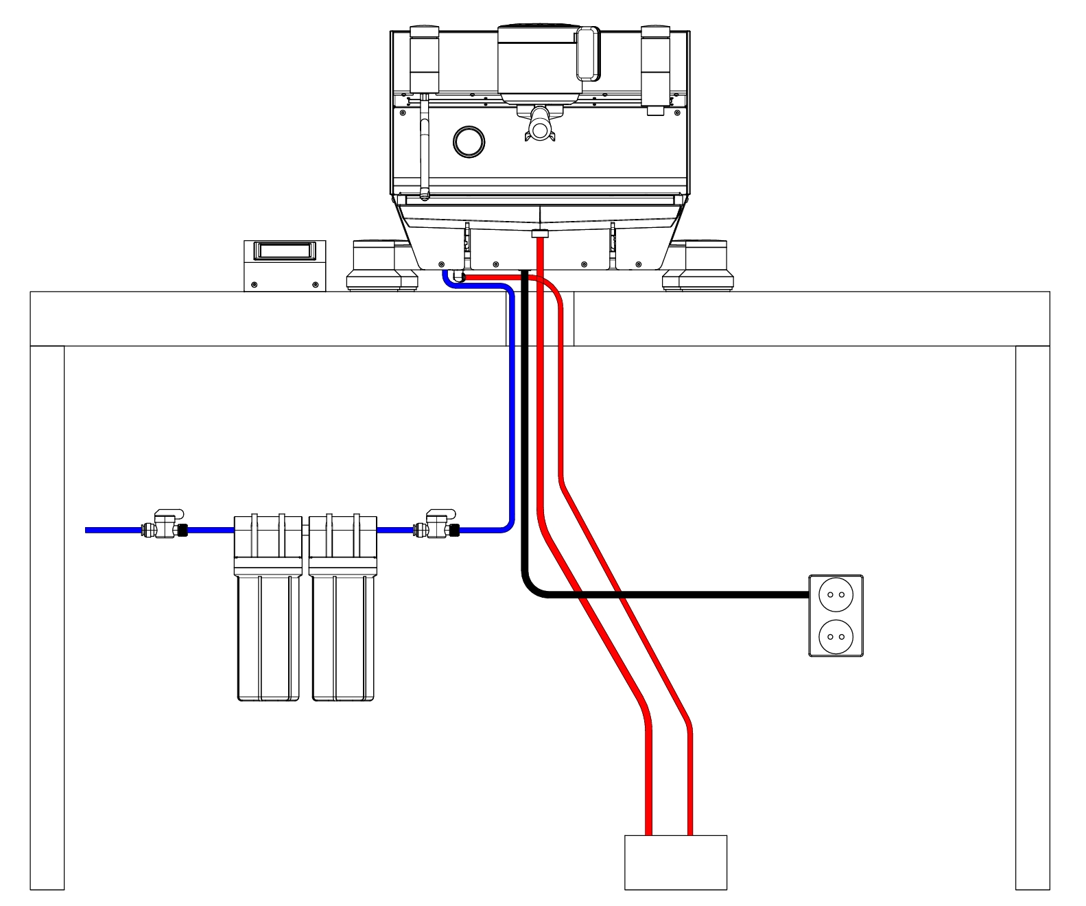 설치 가이드: 현장에서는 정수통과 펌프를 이용하여 급수됩니다.