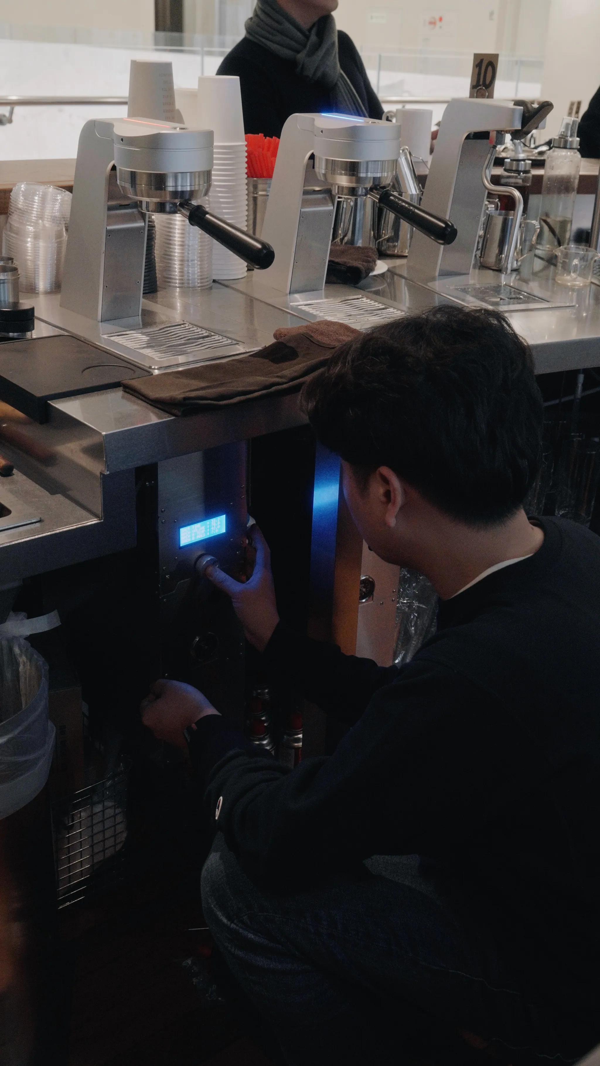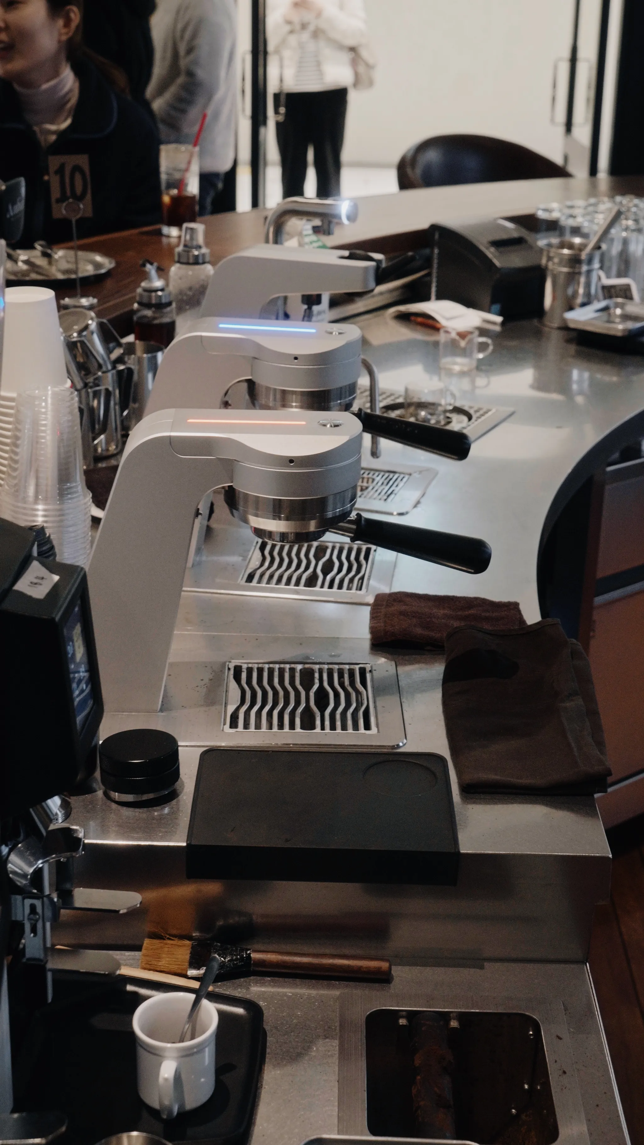 머신 본체가 카운터 아래에 위치하고 그룹헤드만 상단에 노출되는 구조로, 바리스타와 손님 사이의 시선이 자연스럽게 연결됩니다. 주문을 받으면서도 손님과 눈을 맞추고 소통할 수 있는 환경이 만들어집니다.