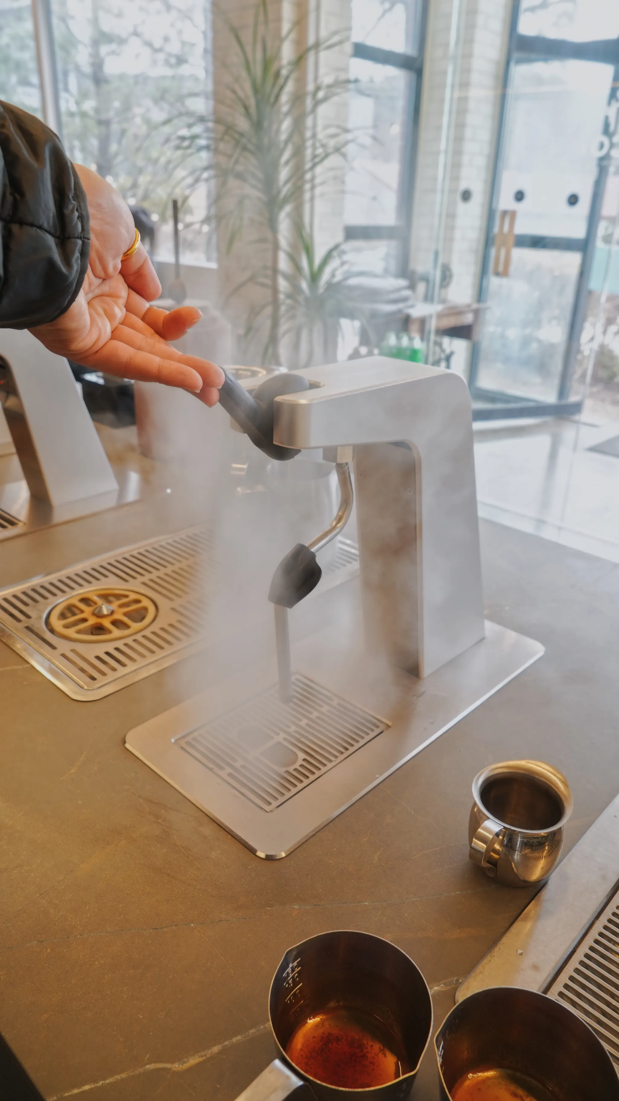 이번 방문에서는 스티치 커피 로스터스에 설치된 **모아이 바 시스템 MSS(스팀 스테이션)**의 현장 점검 및 즉시 조치를 진행했습니다.