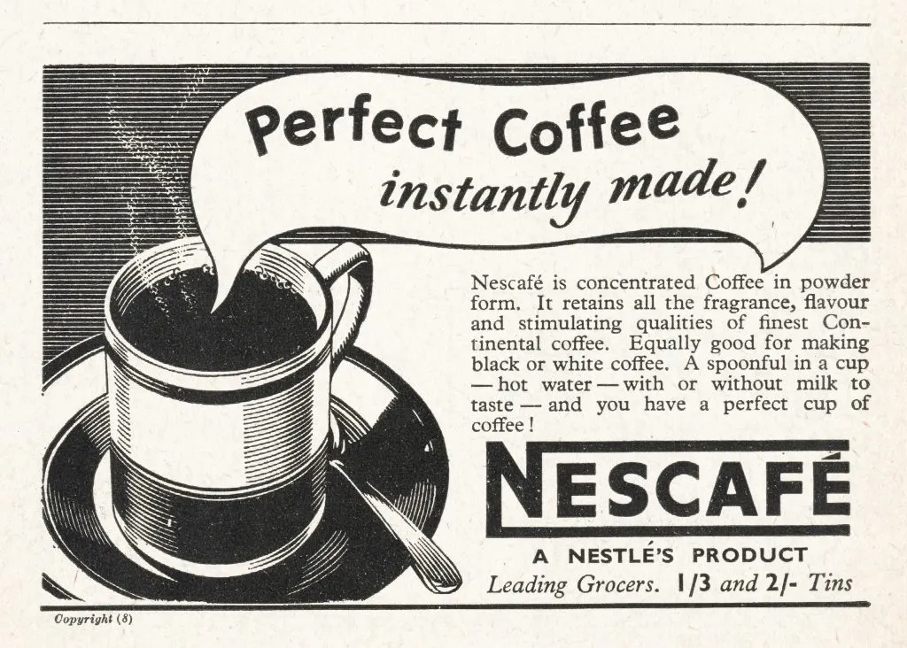 2차 세계대전이 끝난 후 인스턴트커피를 판매하는 회사들은 일반 대중에게 브랜드 인지도를 높이기 위해 더 많은 노력을 했다.