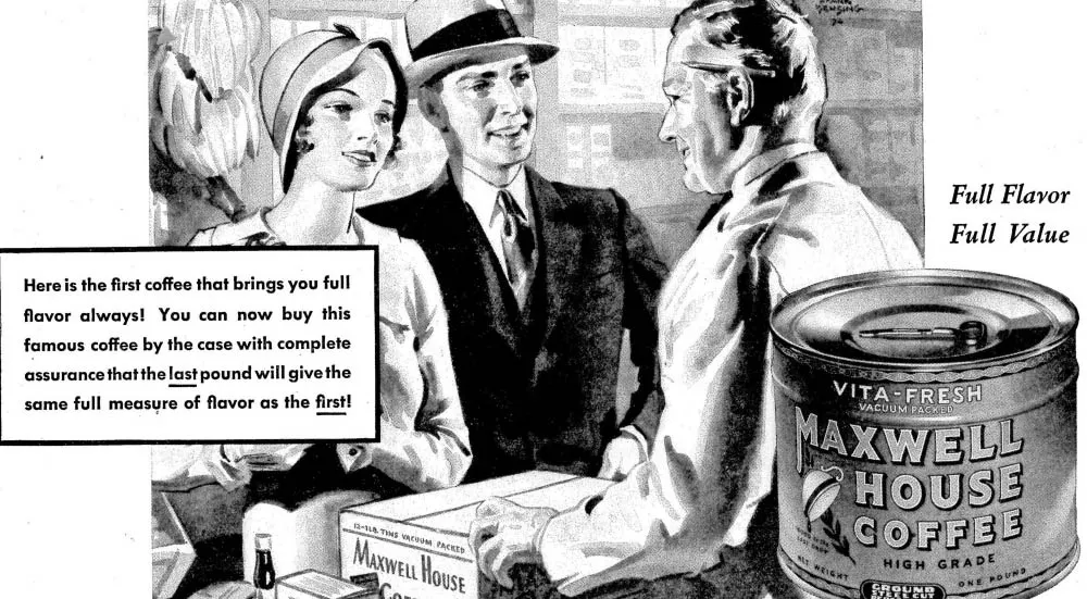 20세기 초 미국에서는 로스팅 커피와 원두커피의 판매를 늘리기 위해 보다 미묘하고 복잡한 마케팅이 등장하였다.