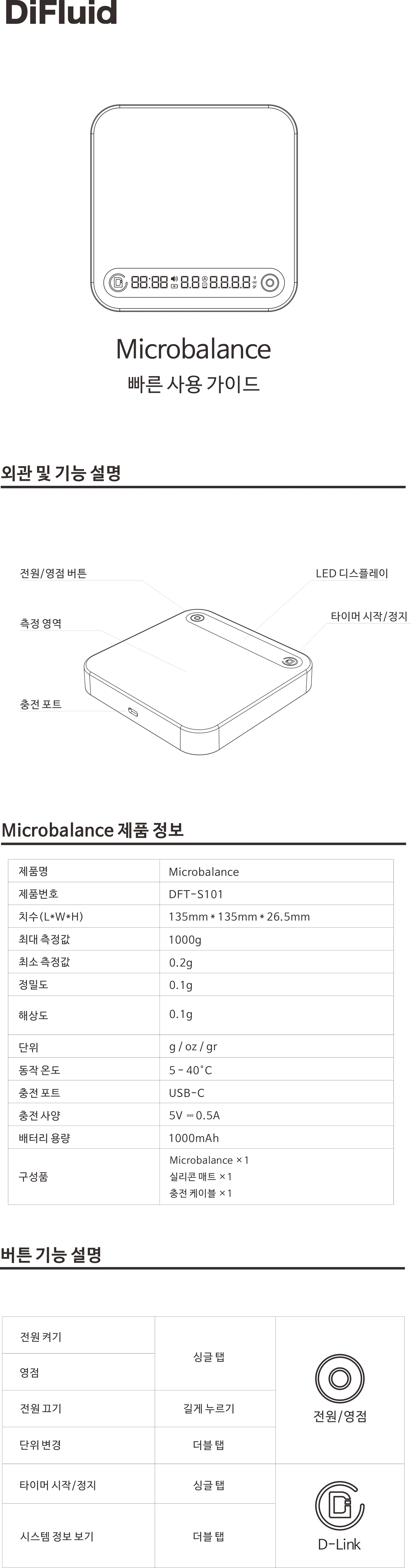 디플루이드 마이크로밸런스는 정밀하고 믿을만한 결과를 제공하는 고급 저울입니다. 이 저울은 커피 추출에 최적화된 기능을 갖추고 있습니다.