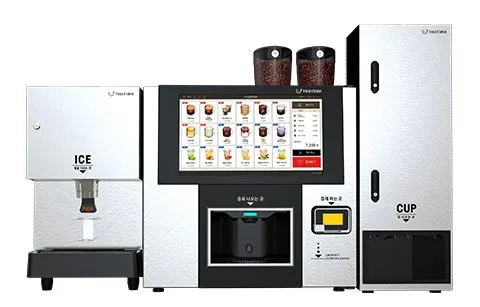 제빙기, 컵 디스펜서가 통합된 무인카페머신으로 36종의 음료를 제공할 수 있다.