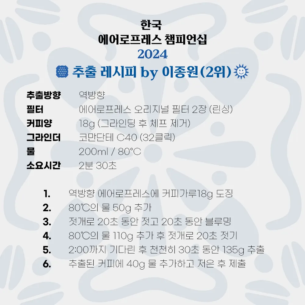 출처: 한국 에어로프레스 챔피언십 KOREAN AEROPRESS CHAMPIONSHIP