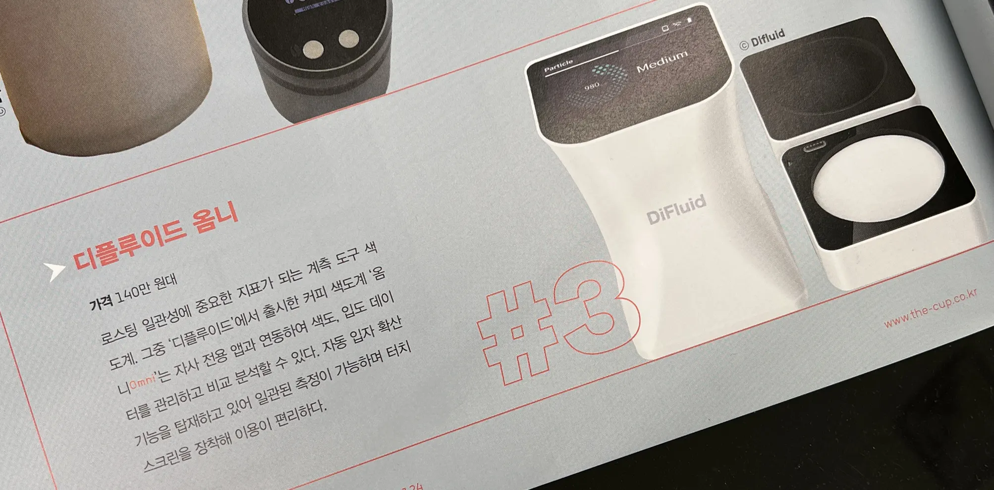 먼저 로스팅할 생두의 무게를 달아주는 저울, 로스팅이 끝난 후 얼마나 로스팅이 되었는지 확인하기위한 색도계, 로스팅한 원두를 추출해 QC를 진행할 때 농도를 확인할 수 있는 농도계 등 다양한 도구들이 필요한데요, 디플루이드에서는 로스팅의 처음부터 끝까지 전 영역에서 좀 더 나은 로스팅을 할 수 있도록 도와줄 수 있는 도구들을 개발 및 유통하고 있어요.