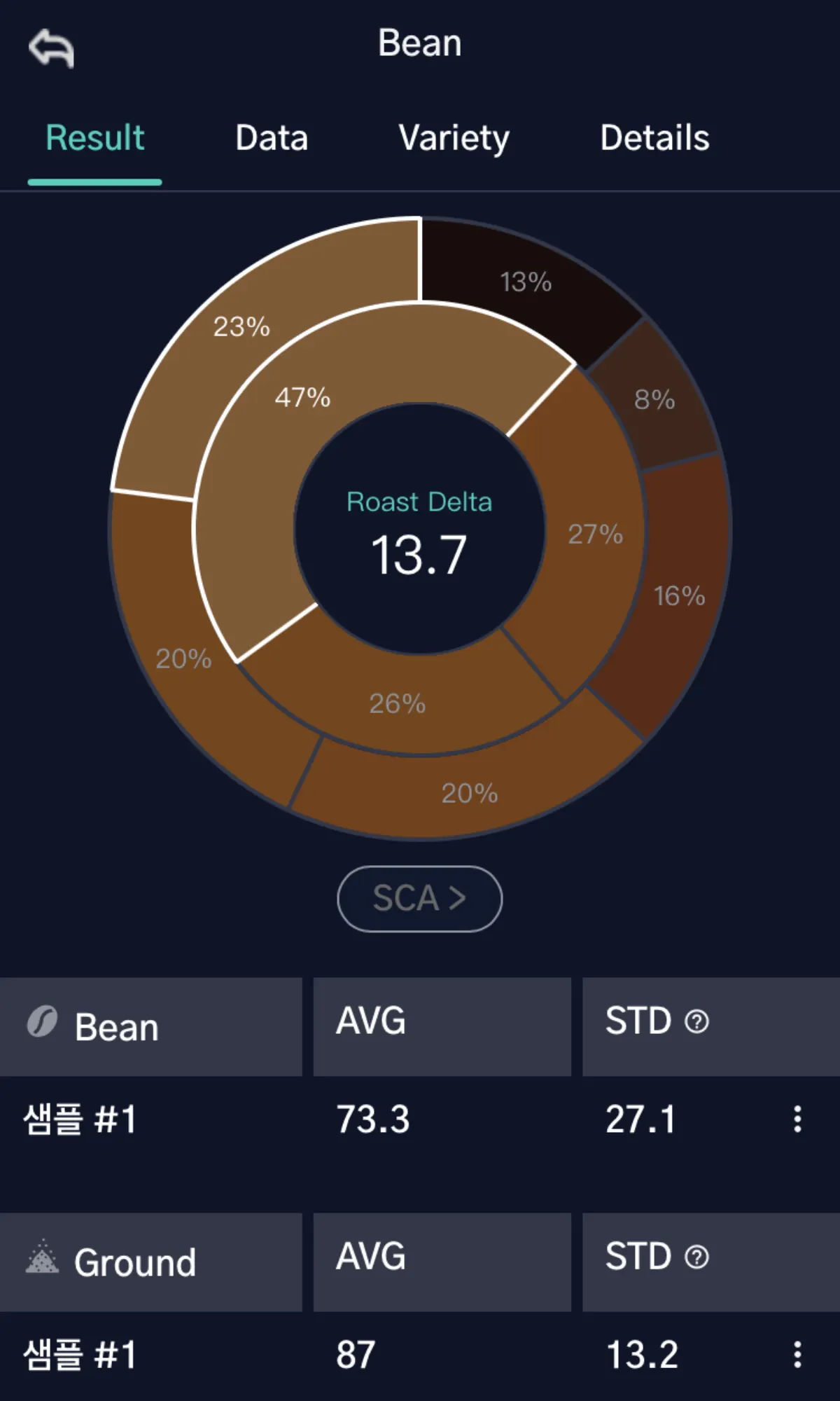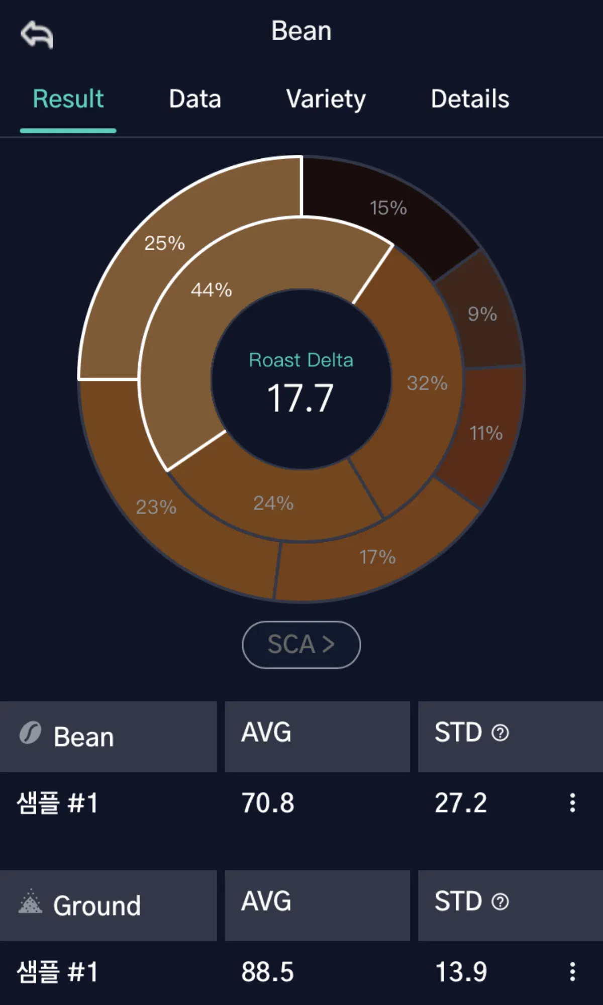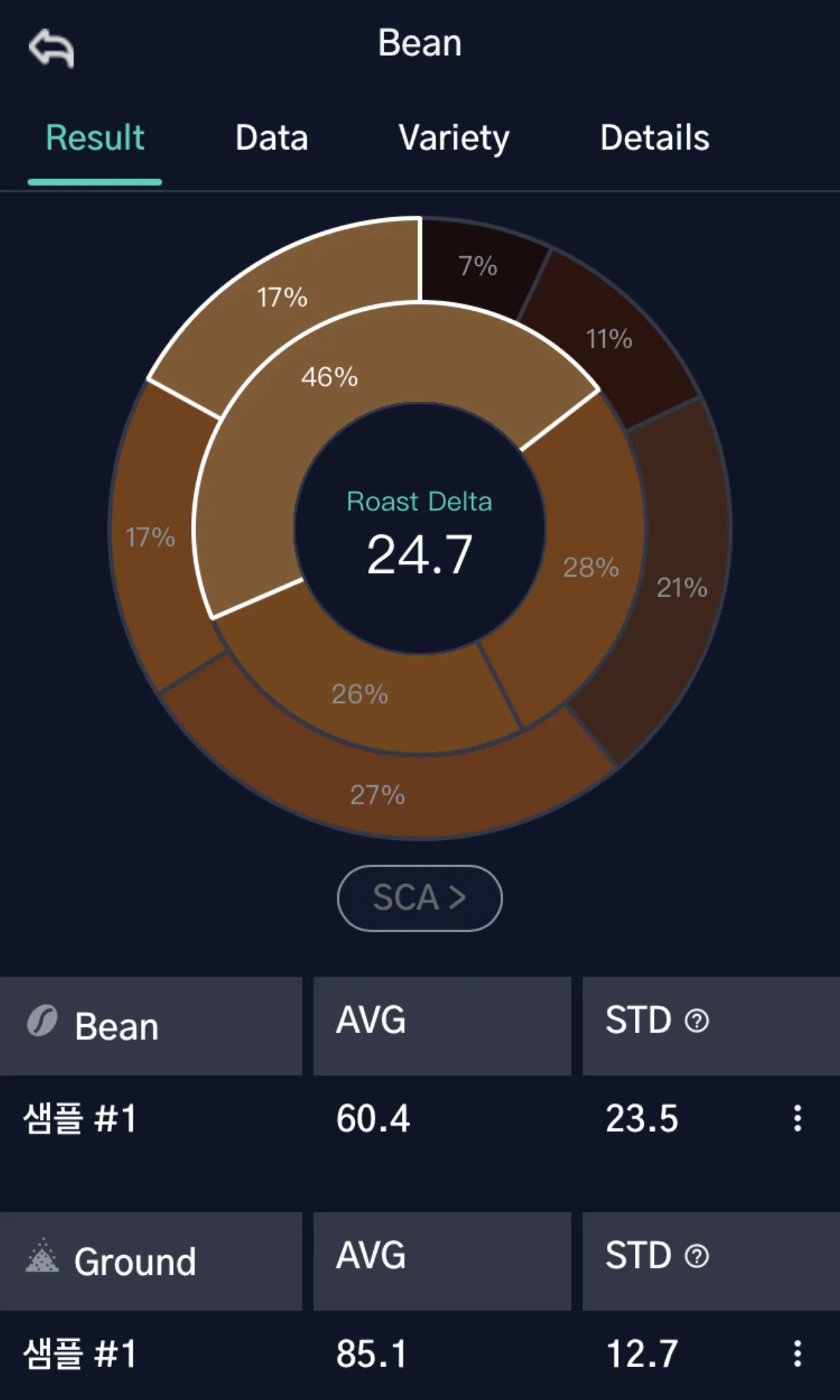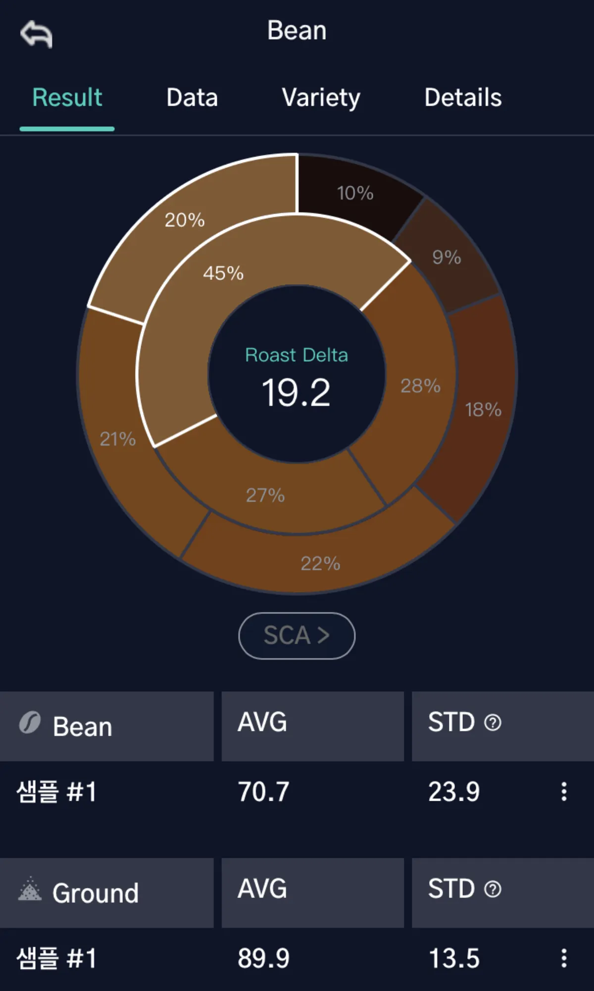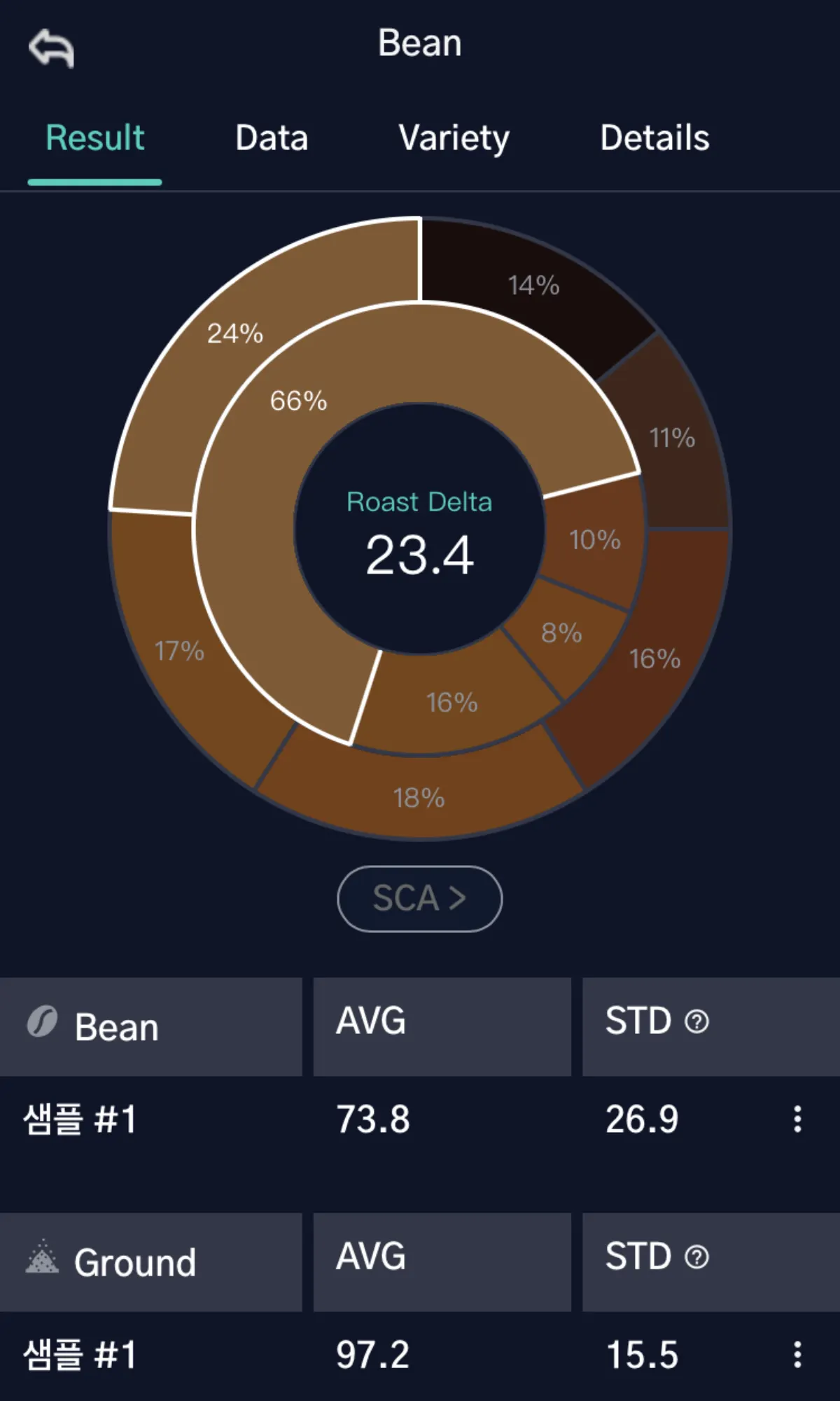 요약하면, STD 표준편차 색은 로스팅 된 커피 원두의 색상 균일성을 측정하여 로스팅 프로세스의 품질과 일관성을 평가하는 중요한 도구입니다. 이를 통해 로스터는 최종 제품의 품질을 유지하고 향상시킬 수 있습니다.