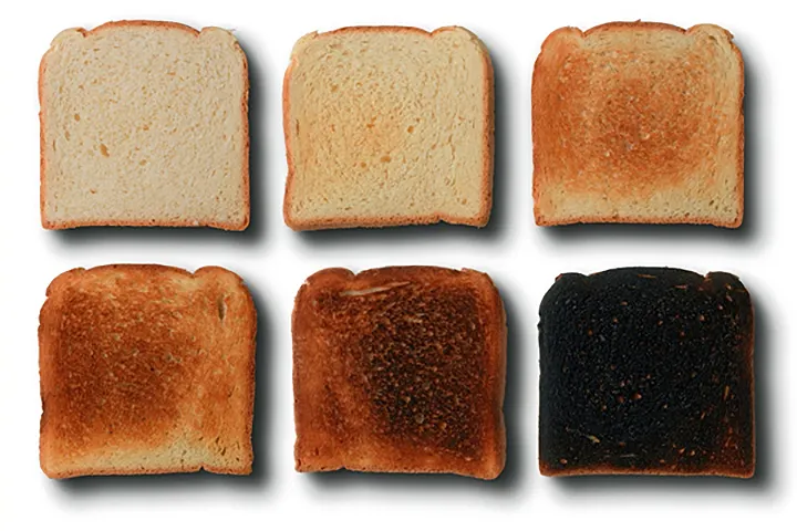 아래에 보이는 빵들의 맛을 먹지 않고도 상상할 수 있다면, 이미 색도를 왜 봐야 하는지 이해하고 계신 겁니다. 빵의 색이 변하는 것은 그 안에 있는 여러 성분들이 열을 받아 화학 반응을 일으킨 결과입니다.