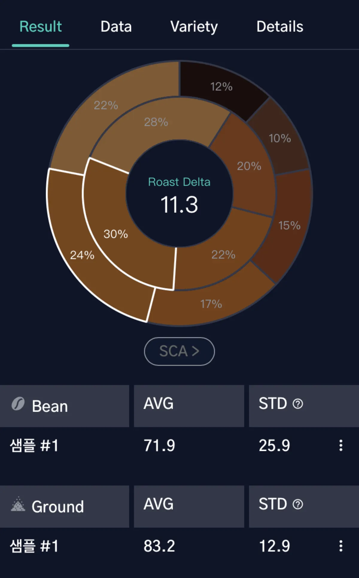 STD 표준편차 색도는 로스팅 된 커피 원두의 색상이 얼마나 균일하게 로스팅 되었는지를 평가합니다.