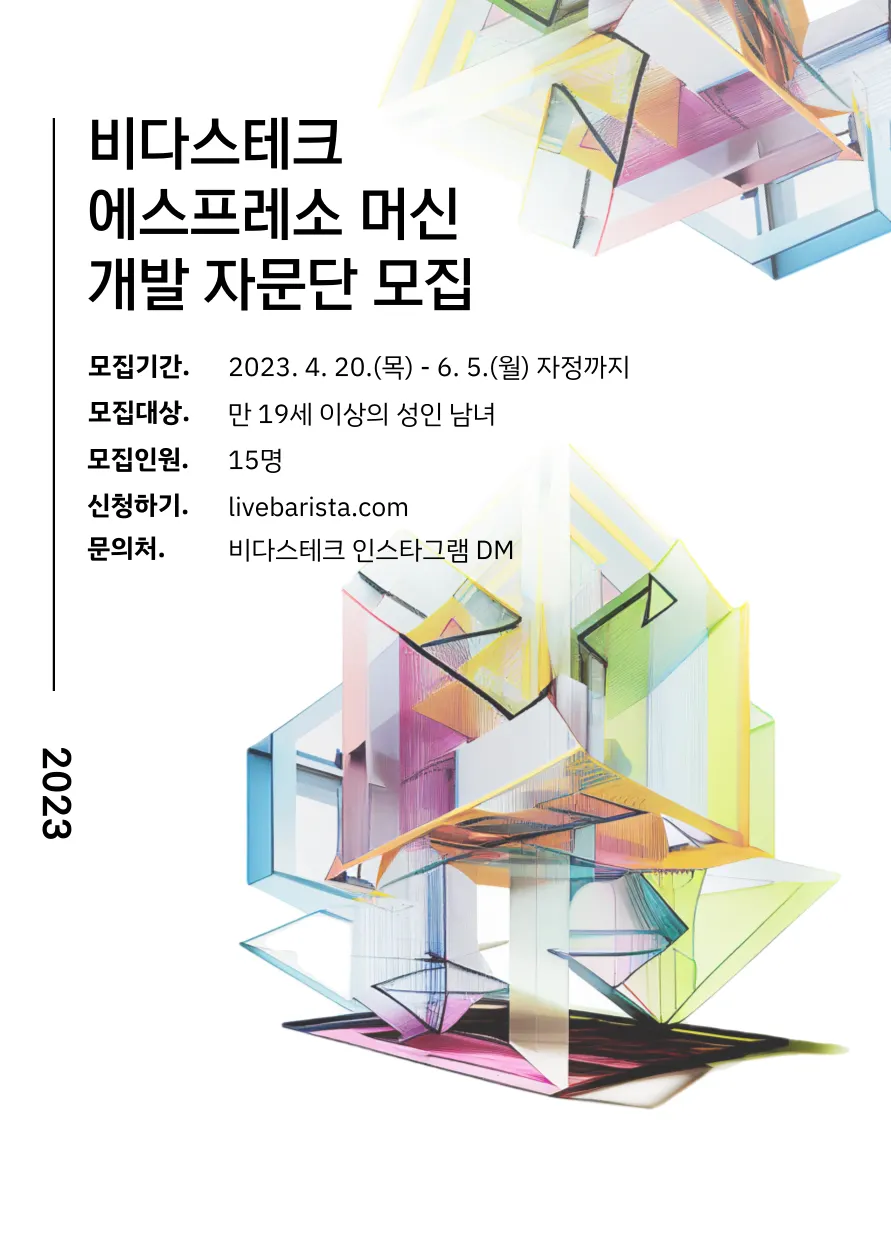 한국 에스프레소 머신 개발사 비다스테크에서 국내 커피 산업 독립을 위한 에스프레소 머신 개발 자문단 '비비탄' 을 모집합니다.