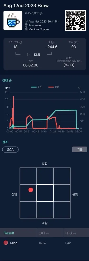 *물 투입량은 250g, 분쇄도 구형 ek43기준 10.5입니다.