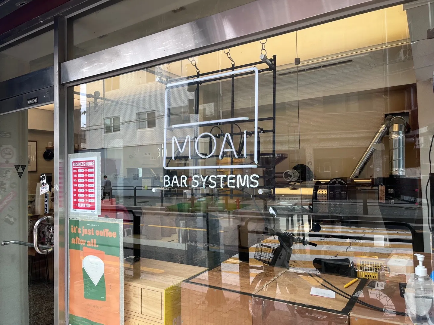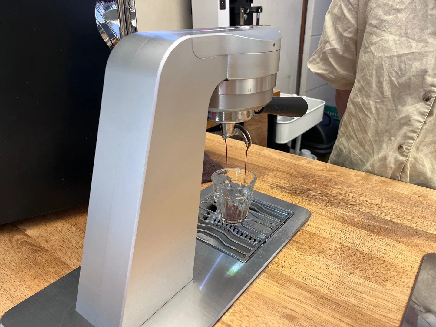 에스프레소 추출 모습을 함께 관찰할 수 있는 간결하고 깔끔한 모아이 바 시스템