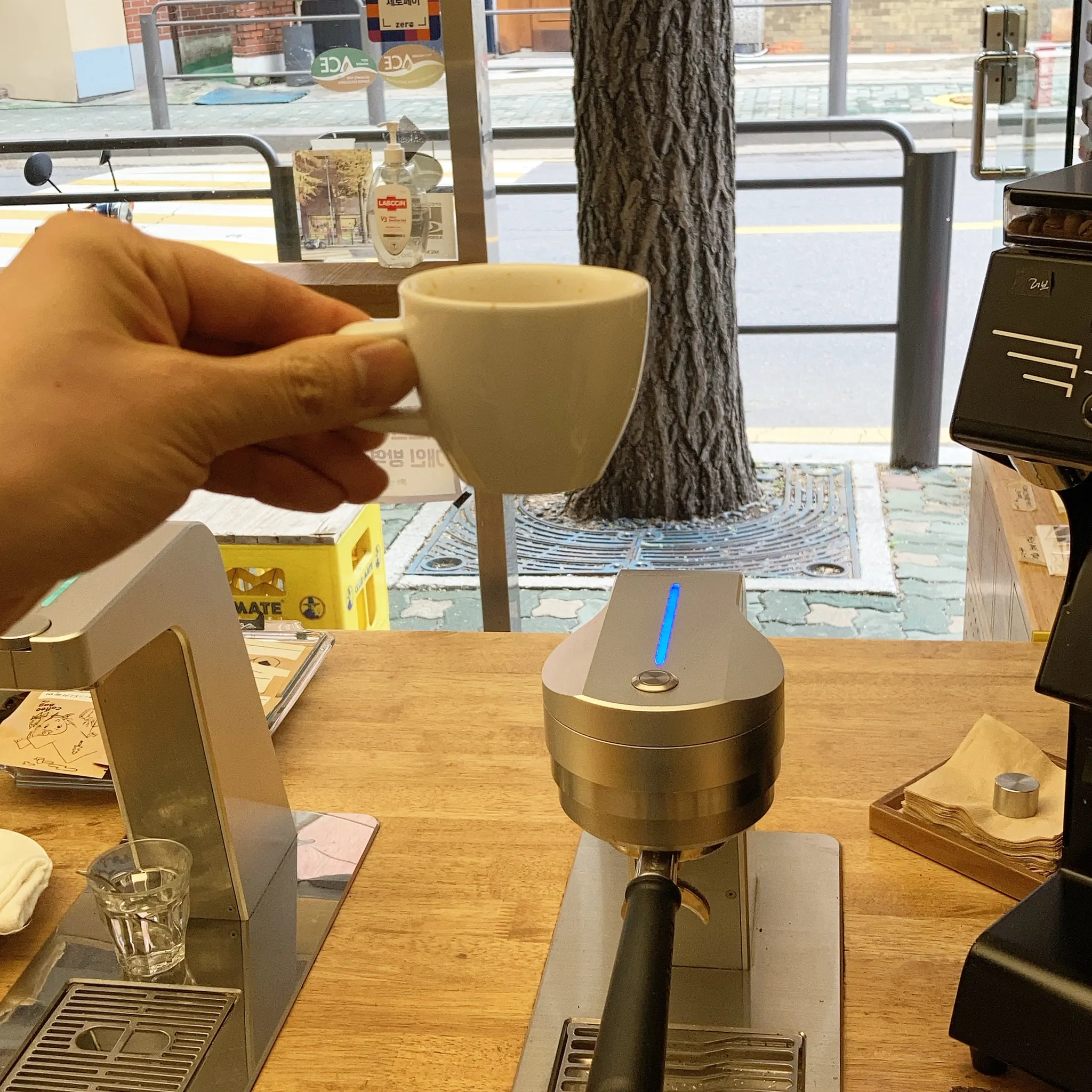 출근과 함께 매일 바라보는 에스프레소 머신이지만 여전히 그 앞에 서면 제 마음은 두근거립니다.