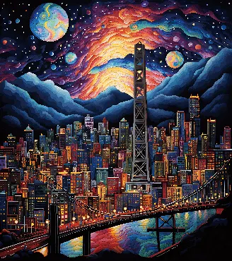 작품 : 시애틀의 잠못드는 밤의 분위기와 환상적인 도시의 저녁 풍경을 표현하였습니다.