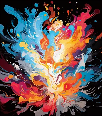 작품 : 불 없이 연기가 나오지 않는다는 컨셉을 추상적으로 다양한 색상으로 표현하였습니다.