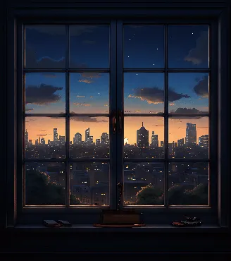 작품 : 멋진 창문이 있는 카페에서 도시를 바라보는 고객의 모습을 상상하여 그렸습니다.