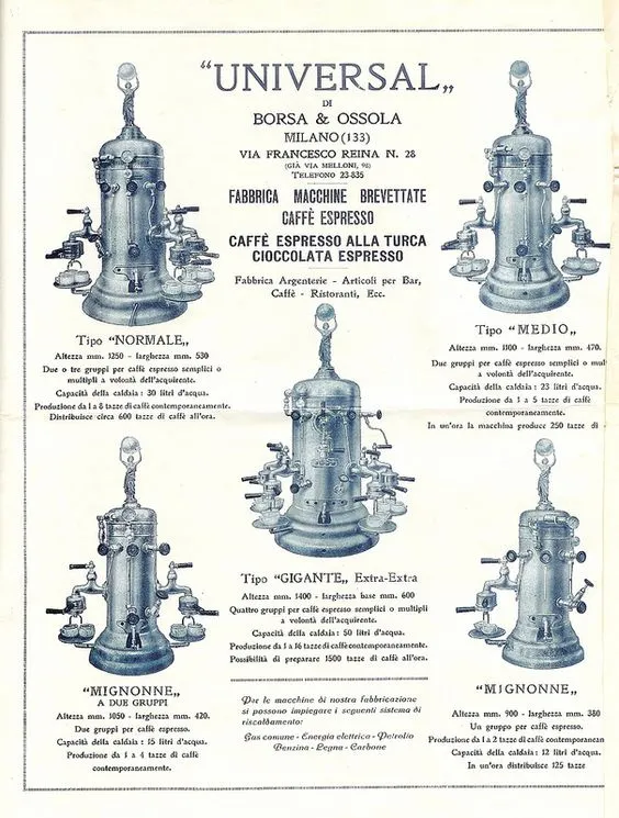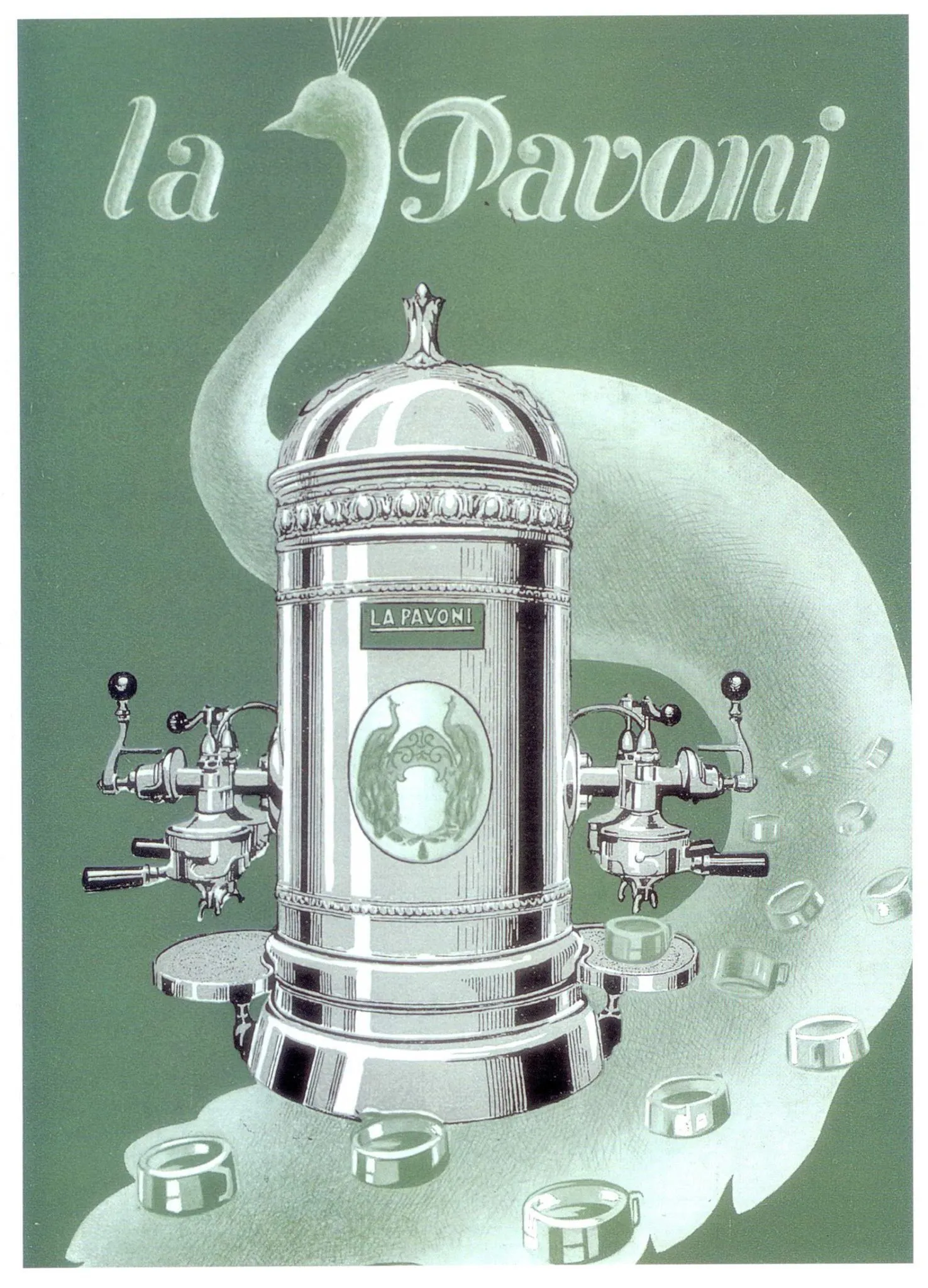 Origional brochure of The Ideale, Giagante Model from 1920's-30's. La Pavoni, Italian for "The Peacock"is the famous embossed logo still used today over 100 years later. From La Pavoni archives