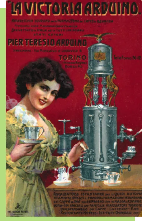 PIER TERESIO ARDUINO, The idea that inspired the creation of the machine was the steam engine train and the concept of making a coffee in the fastest way possible.